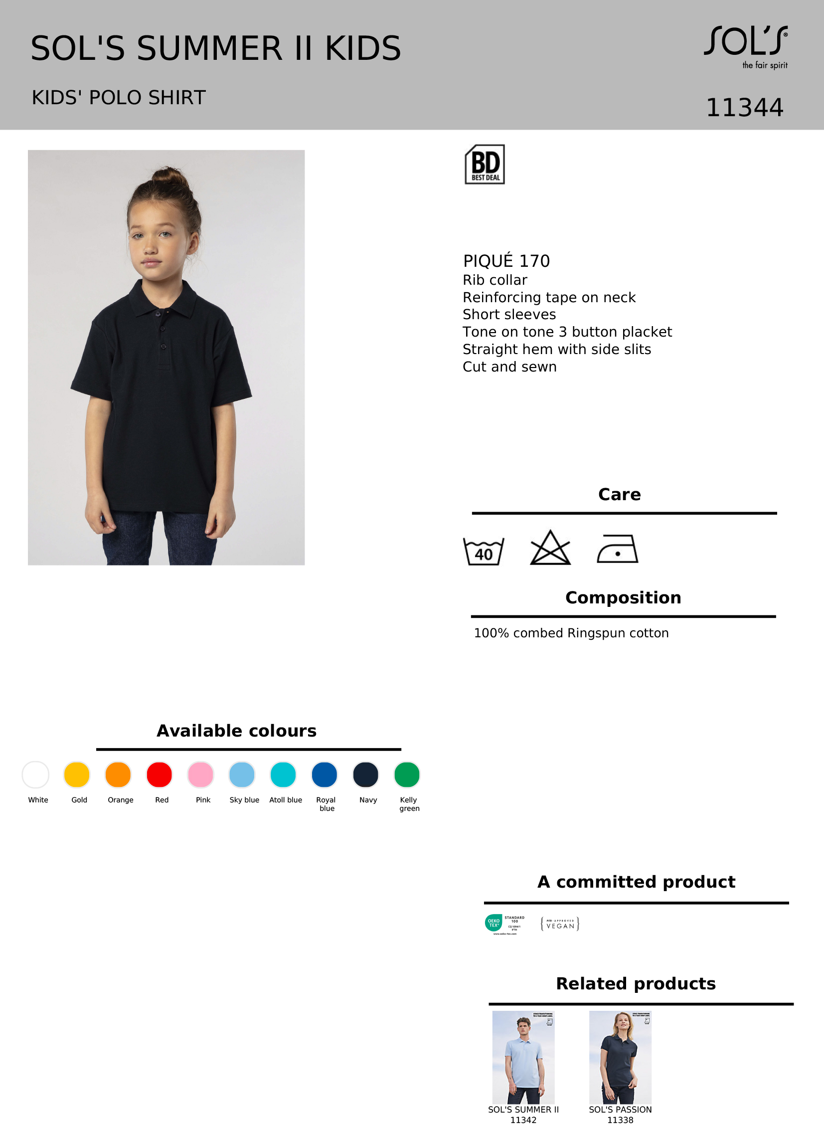 SOL'S - 0520196 - SUMMER II KIDS - 11344 - Παιδικό πόλο πικέ - με Κέντημα